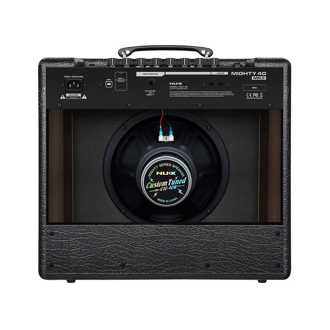 NUX Mighty 40MKII là ampli modeling guitar 40 watt, đi kèm module Bluetooth NBT-1, mang đến khả năng kết nối hiện đại và tiện lợi. Với công suất tùy chỉnh từ 0.5W, 5W đến 40W, sản phẩm phù hợp cả khi tập luyện tại phòng ngủ lẫn khi biểu diễn trên sân khấu nhỏ.