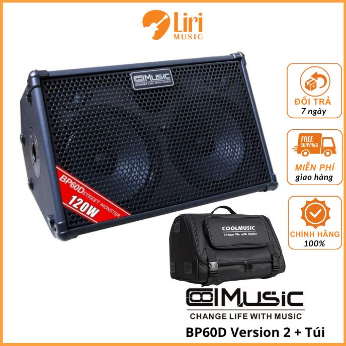 COOLMUSIC BP-60D là bộ khuếch đại guitar thùng đa năng. Nó có pin sạc lithium bên trong, có thể sử dụng tới 8 giờ sau khi sạc đầy. 2 đầu vào nhạc cụ guitar và 2 đầu cắm micrô.