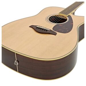 Guitar Acoustic Yamaha FGX830C sở hữu thiết kế cổ điển với phần khuyết ở thân đàn, giúp người chơi dễ dàng tiếp cận các phím đàn cao. Mặt đàn làm từ gỗ vân sam nguyên tấm (solid spruce) mang đến âm thanh sáng, rõ ràng và giàu hài âm. Lưng và hông đàn làm từ gỗ hồng mộc (rosewood) tạo nên âm trầm ấm áp và sâu lắng. Sự kết hợp hoàn hảo giữa hai loại gỗ này mang đến một âm sắc cân bằng và cuốn hút.