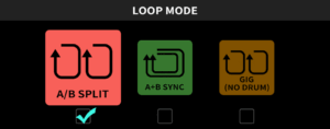 A+B Sync Mode: Phù hợp khi chơi hai nhạc cụ hoặc giọng hát cùng lúc (ví dụ guitar và micro, hoặc guitar và bass). Bạn có thể điều chỉnh âm lượng giữa loop A, loop B và phần trống để có bản phối cân bằng nhất.
